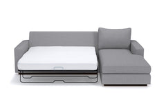 You can stop searching now. The Harper 2 Piece Sleeper Sectional Sofa is the sofa bed that you've been searching for your entire life. Featuring clean lines, a sexy profile with a solid wood base, and an undeniably contemporary design, the Harper 2 Piece Sleeper Sectional Sofa will absolutely dazzle your guests - and they'll never suspect that it's a sofa bed unless you tell them! This sleeper sectional features a Full Size mattress, a bench cushion, and a relaxing chaise. Plus the detachable, flippable, and reversible back cushions and seat cushions make the Harper even more attractive - if that's possible. Good luck trying to get rid of your house guests once they know that you have the best sleeper sofa in town. Our new line of Apt2B sleeper sectional sofas combine the reliability of a classic sofa with the modern versatility of a sleeper sofa with chaise. The Harper Sleeper Sectional Sofa can be upholstered in any of Apt2B's line of pet friendly and kid friendly fabrics. With a Full Size pull out sofa bed, the Harper is great for the entire family - pets included.
