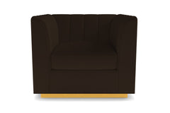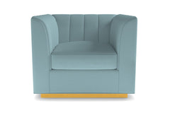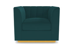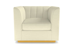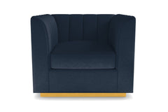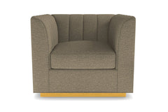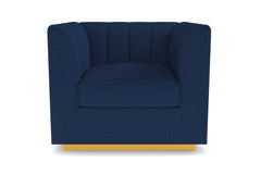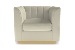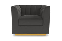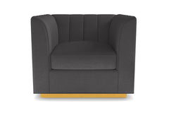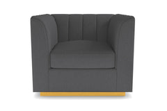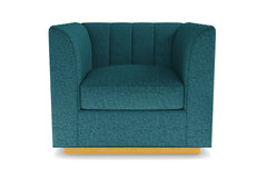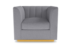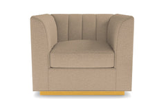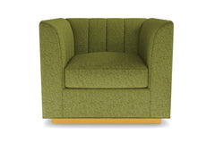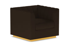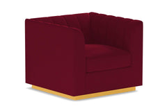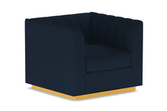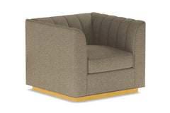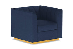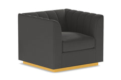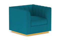 This sleek, and oversized chair has a tight channel-tufted back that has an art deco flair with a modern silhouette. With high arms and a high back this chair envelopes you like an old school restaurant booth but the deep seat has you staying for dessert.