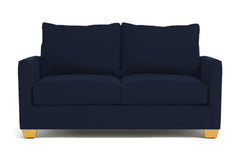 Who says apartment living has to cramp your style? Certainly not us. Apt2B specializes in apartment furniture with a modern flair and the Tuxedo Sofa is no exception. Designed for a smaller living space, this two-seat sofa still features all the comfort synonymous with our Tuxedo Collection, with knife-edged plush cushions and a relaxed vibe. You have your choice of nearly 30 different color fabrics and you can easily dress it up with a few throw pillows. Our breathable upholstery is stain resistant and easy to clean, making this a great choice if you have kids or pets. Our Tuxedo Sofa is made in the United States and comes with a limited lifetime warranty. It's an investment you can't afford to pass up! All dressed up and nowhere to go. The Tuxedo Collection was made for staying in. A transitional look that can translate to any style room, dress it up with pillows or throws to achieve your own look!