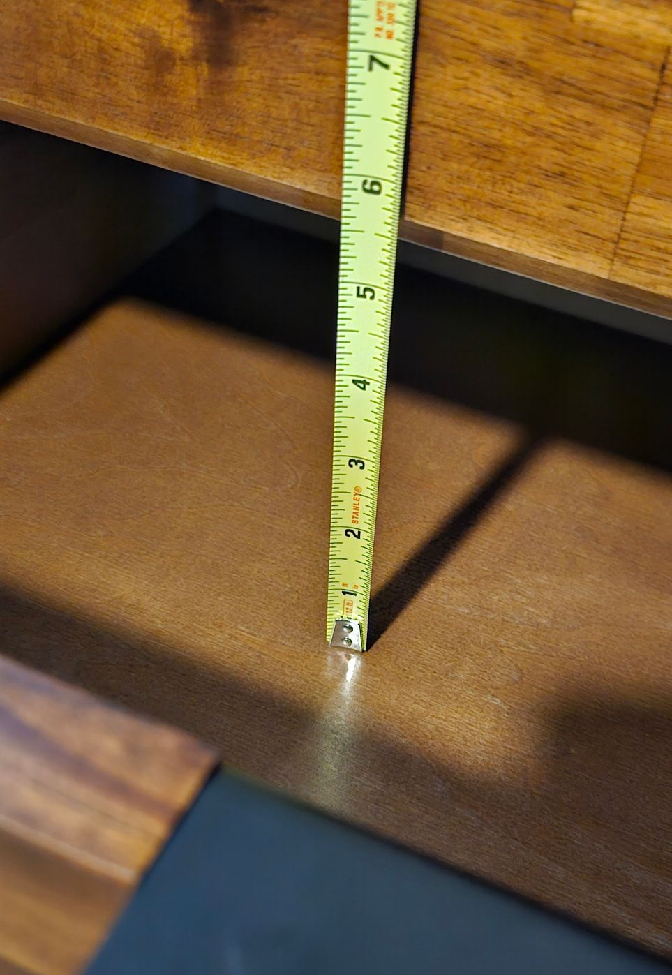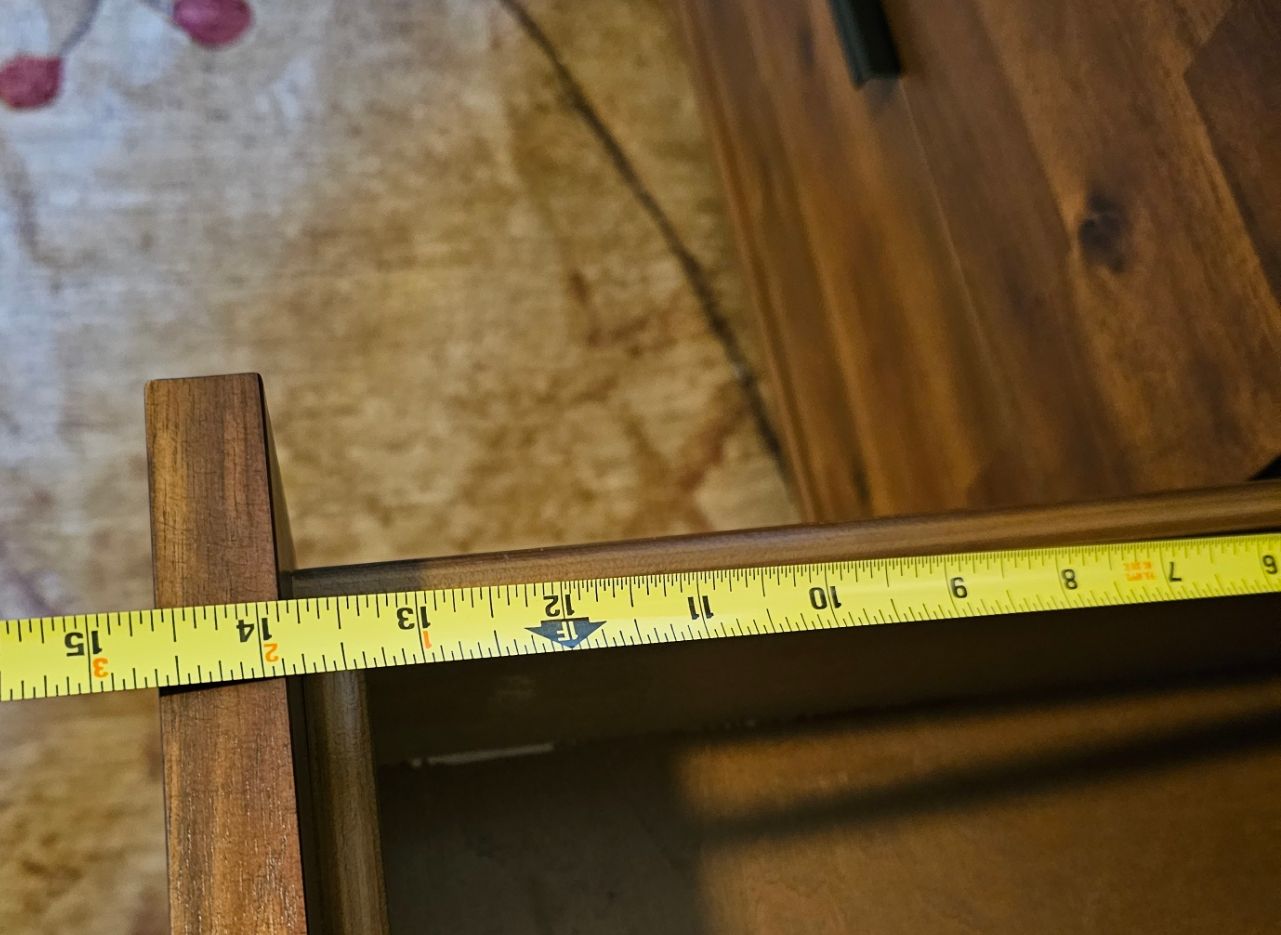 The dresser is sleek and well made. Pay attention to the drawer sizes though, as they might not fit your larger items (see photos). The drawers are not quite 5 inches high and about 13 inches deep.