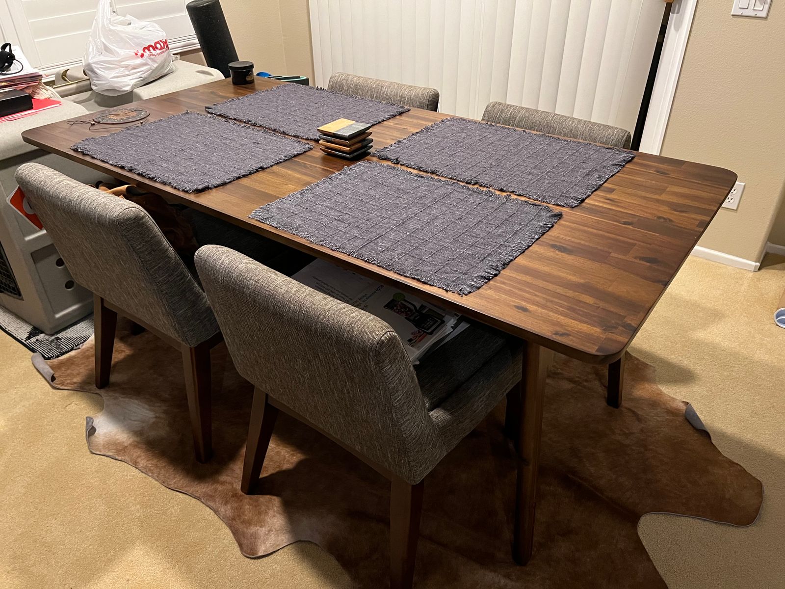 We were so pleased with the Aiken dining table when it first arrived! It truly is an elegant design. Unfortunately, it became scratched and the finish came off in a few places almost immediately from normal use. It has now also buckled in one spot just from being cleaned with wood cleaner intended for this kind of furniture. I reached out to customer support twice and they were unhelpful. If you buy this table, be ready to keep it covered with a tablecloth or not use it every day.