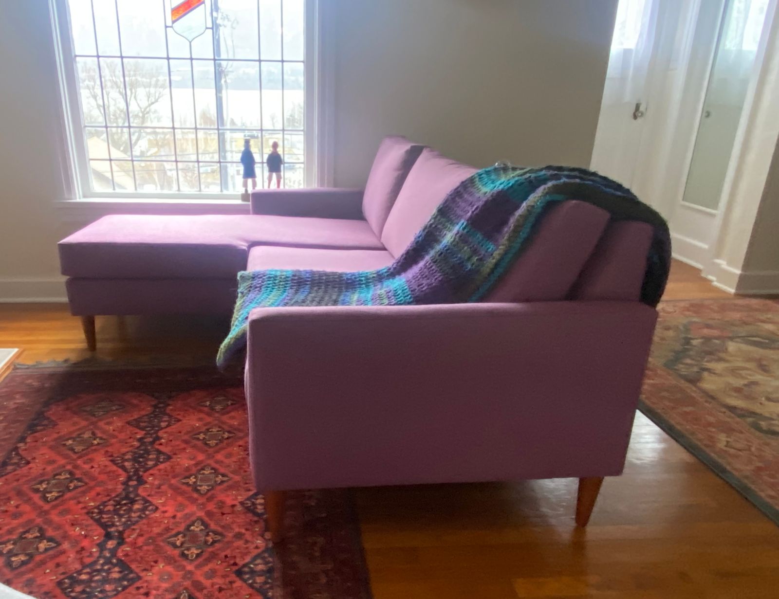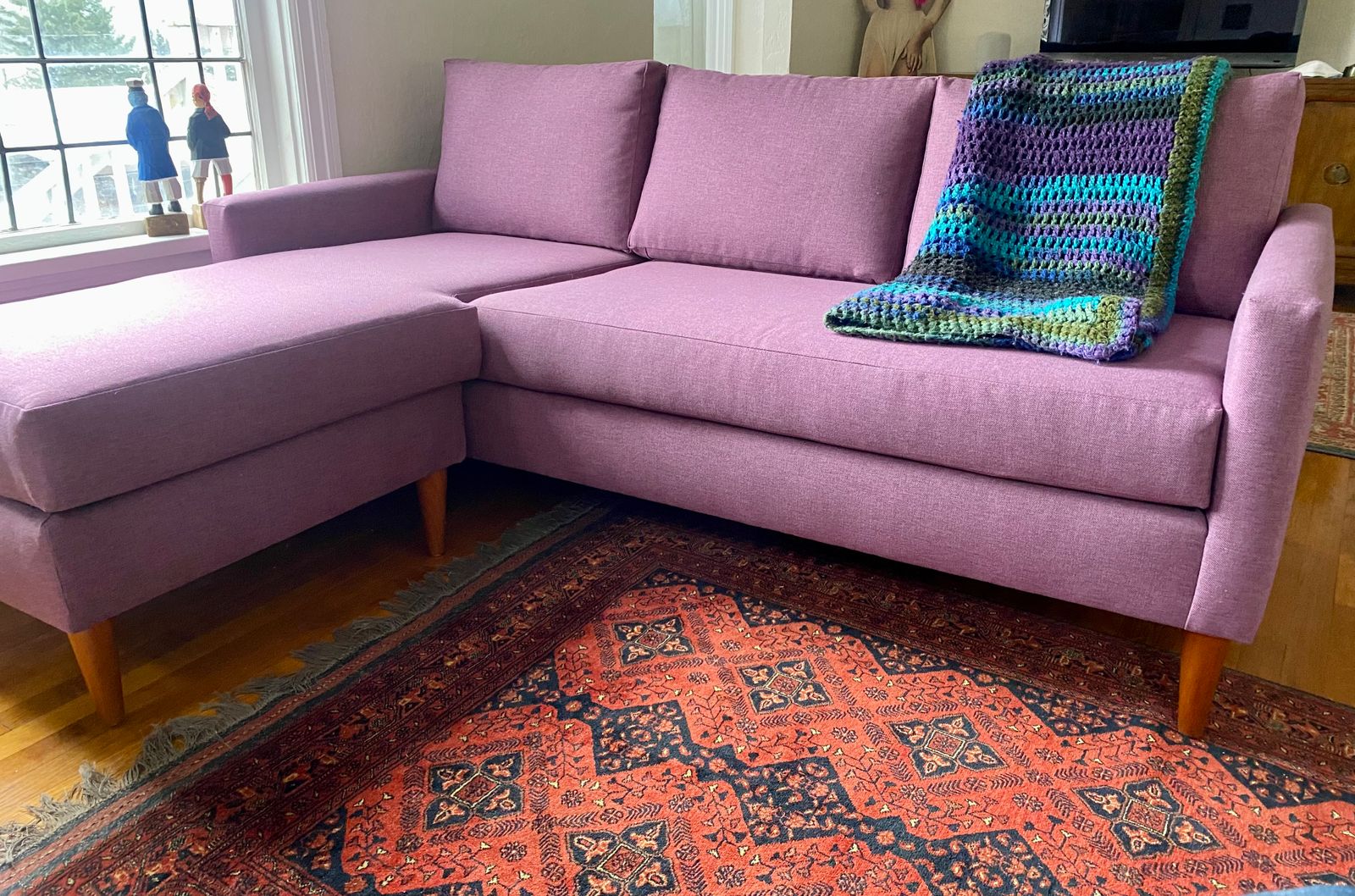 Giving the sofa 3 stars because the chaise height and the sofa height are different. The chaise legs are taller than the couch, so when you sit back on the chaise you sink into the couch and the cushion lifts up.