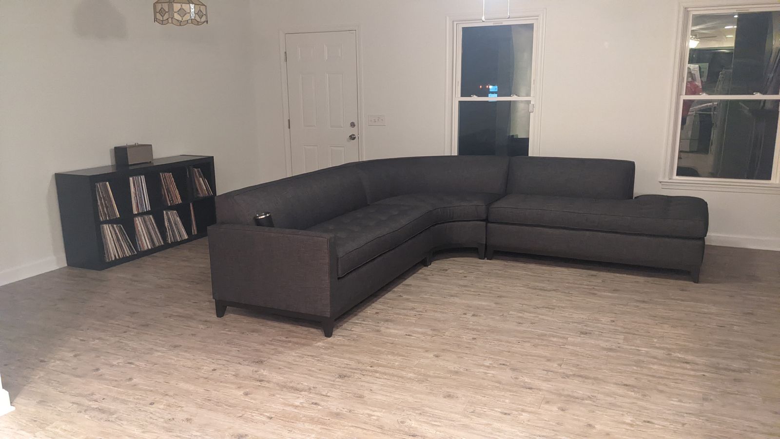 this couch looks beautiful in the room, but I was very disappointed with the quality on the couch base when it arrived. the stain was uneven and we had to get a replacement for one segment because one of the legs was barely attached with 6 of the 7 nails missing the mark.