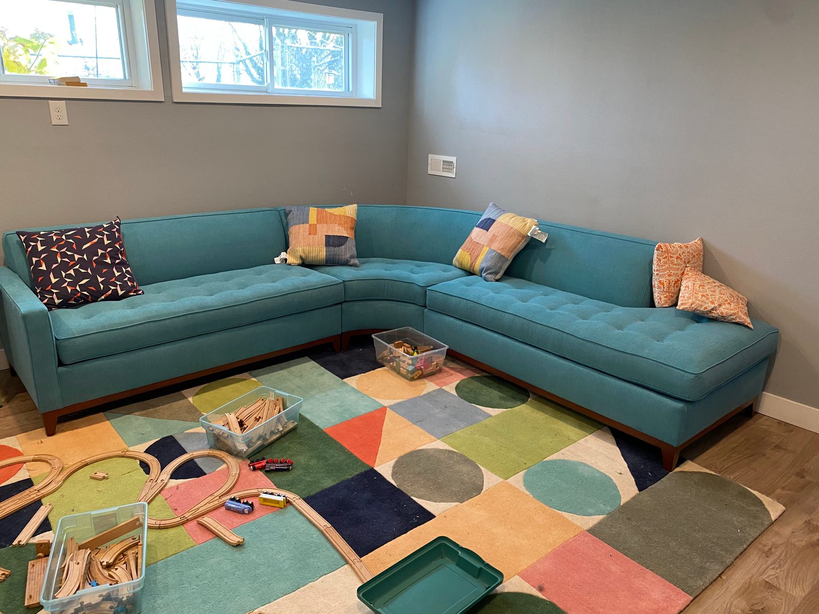 This couch is a beautiful addition to our family room! With two kids under 3 and an ancient cat we've had a few spills that cleaned up nicely and I'm not worried about mucking it up anymore. We've also already had our first guests sleep on the full-size sleeper and the report back was that it was quite comfortable.