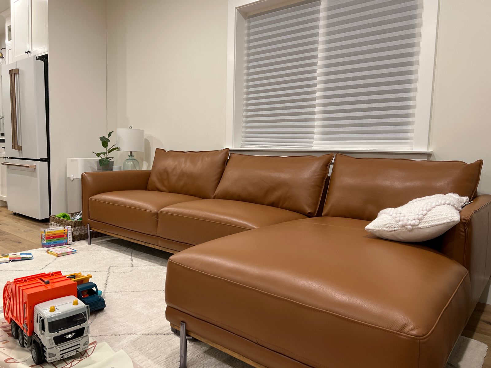 This is a beautiful piece of artwork just stunning to look at , the quality of leather is incredible and it’s very durable. I love this chaise sectional!
