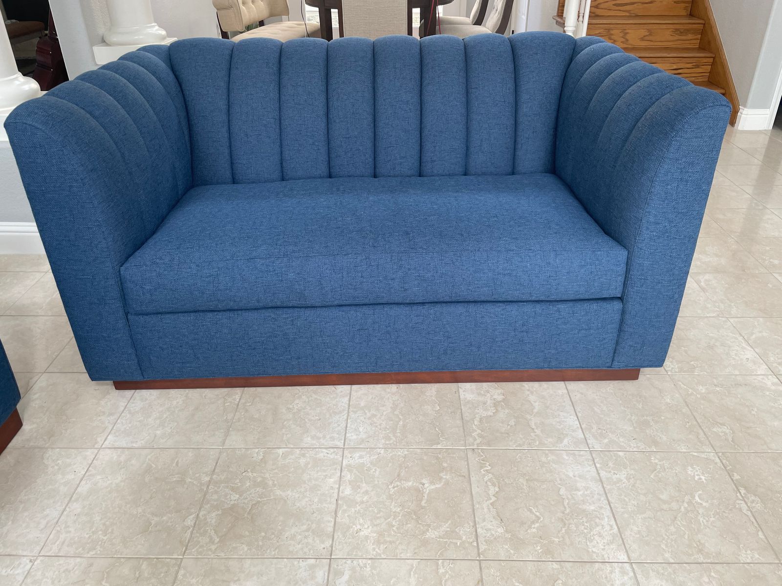 This sleek apartment-size sofa has a tight channel-tufted back that has an art deco flair with a modern silhouette. With high arms and a high back this chair envelopes you like an old school restaurant booth but the deep seat has you staying for dessert.
